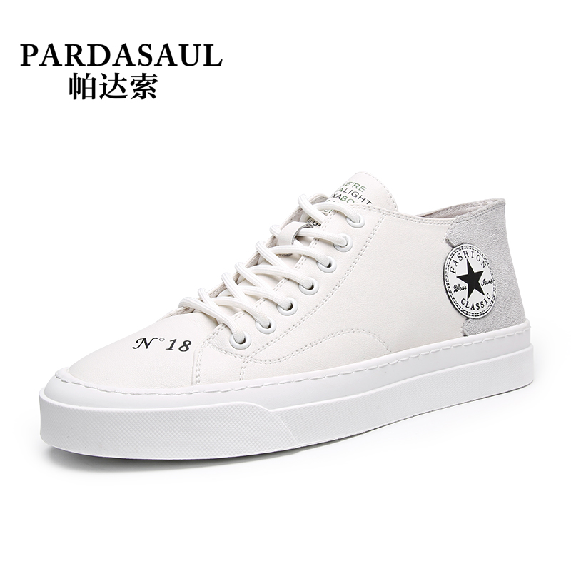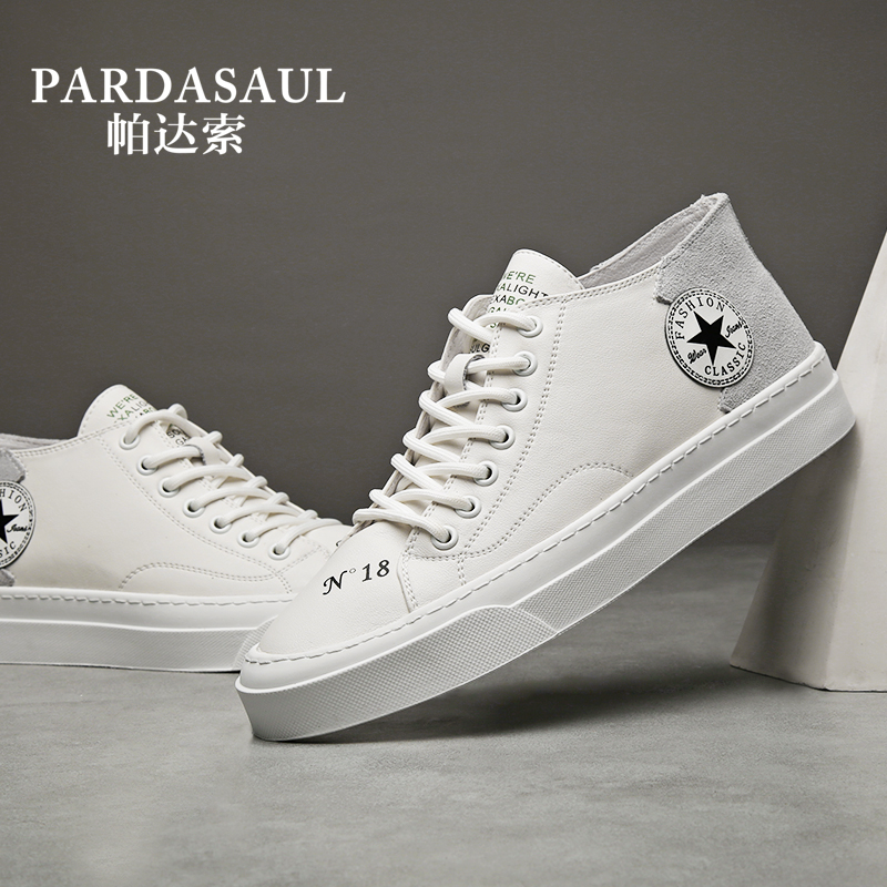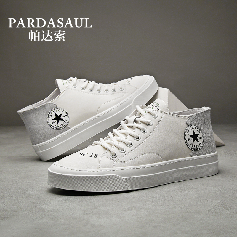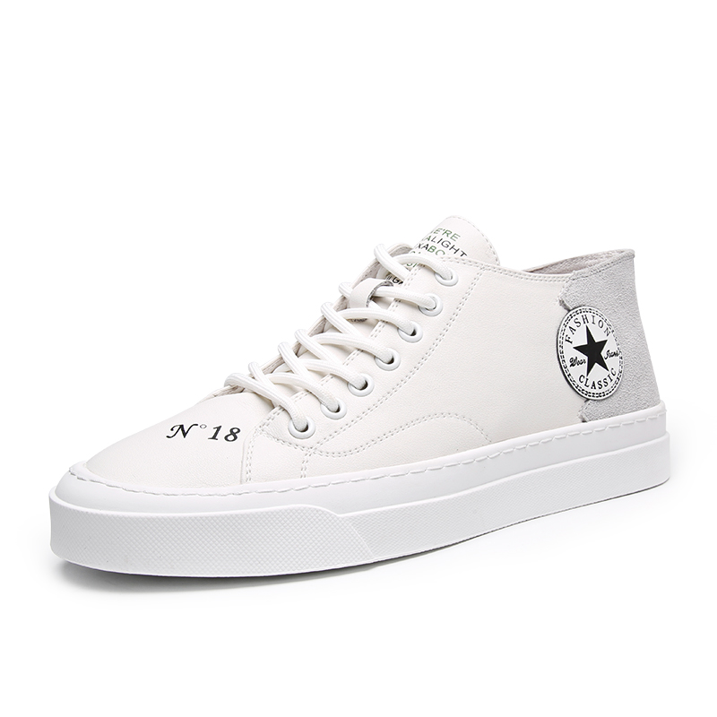 靴子 真皮防水厚底增高工装 森马马丁靴男秋季 高帮百搭休闲白色板鞋