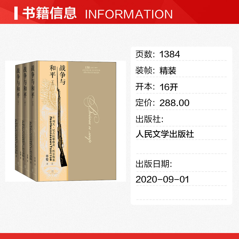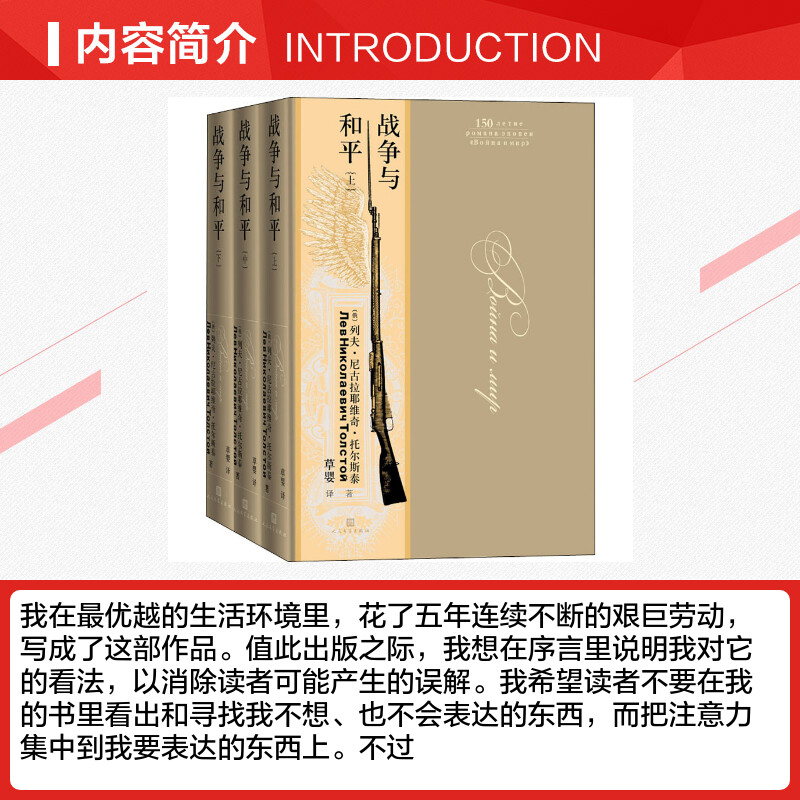 图书籍 社 列夫·托尔斯泰 译 外国小说文学 草婴 俄罗斯 著 人民文学出版 战争与和平 新华书店正版 全3册