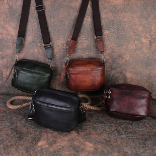 法缇斯真皮女包包新款 复古气质牛皮休闲马鞍包大容量宽肩带斜挎包
