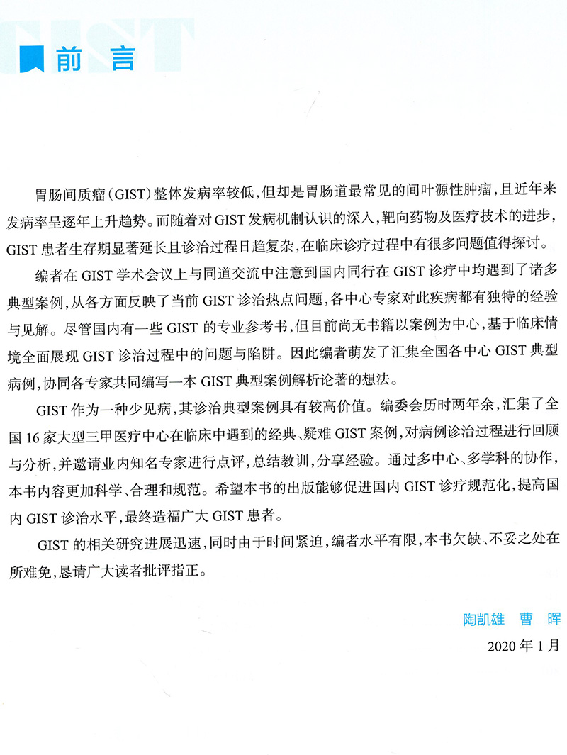现货胃肠间质瘤典型病例诊治与解析人民卫生出版 社陶凯雄曹晖9787117301466
