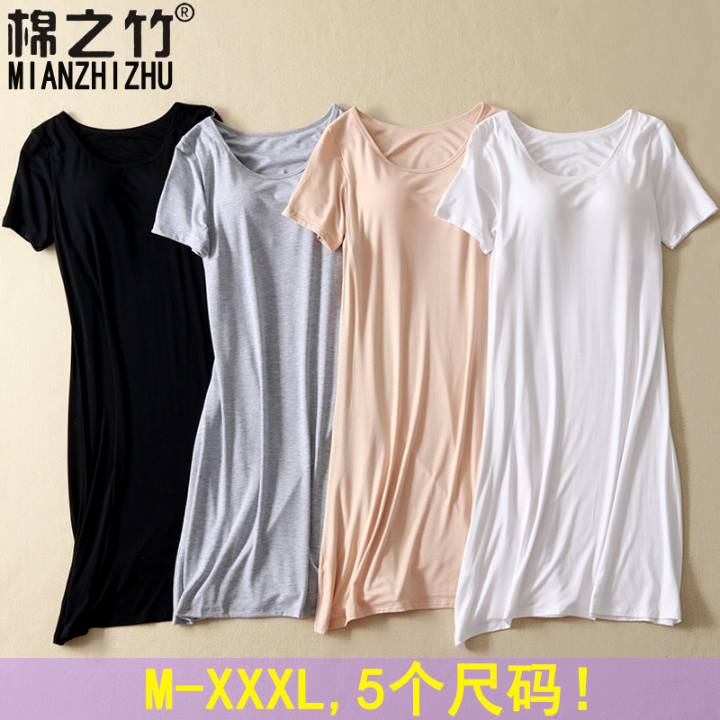 莫代尔短袖 家居服长裙可外穿 背心睡裙女士带胸垫睡衣女宽松加大码