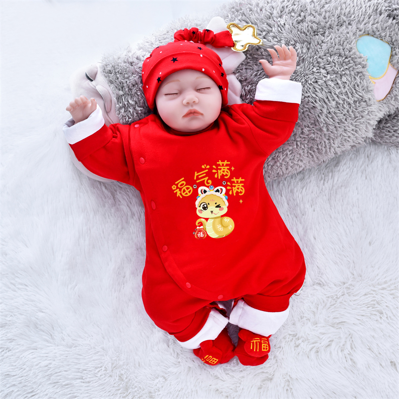 满月宝宝衣服春秋夹棉纯棉蛇年男婴儿百天新生儿公主女秋冬连体衣