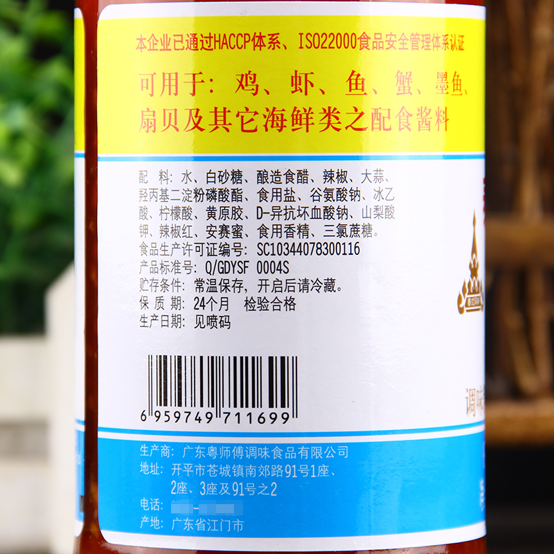 炸鸡鸡排薯条辣椒酱蘸酱调味酱 12瓶 粤师傅牌泰式 甜辣鸡酱830g