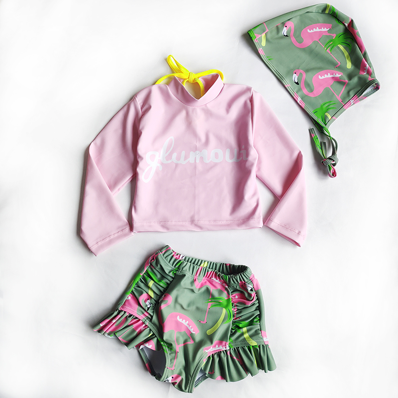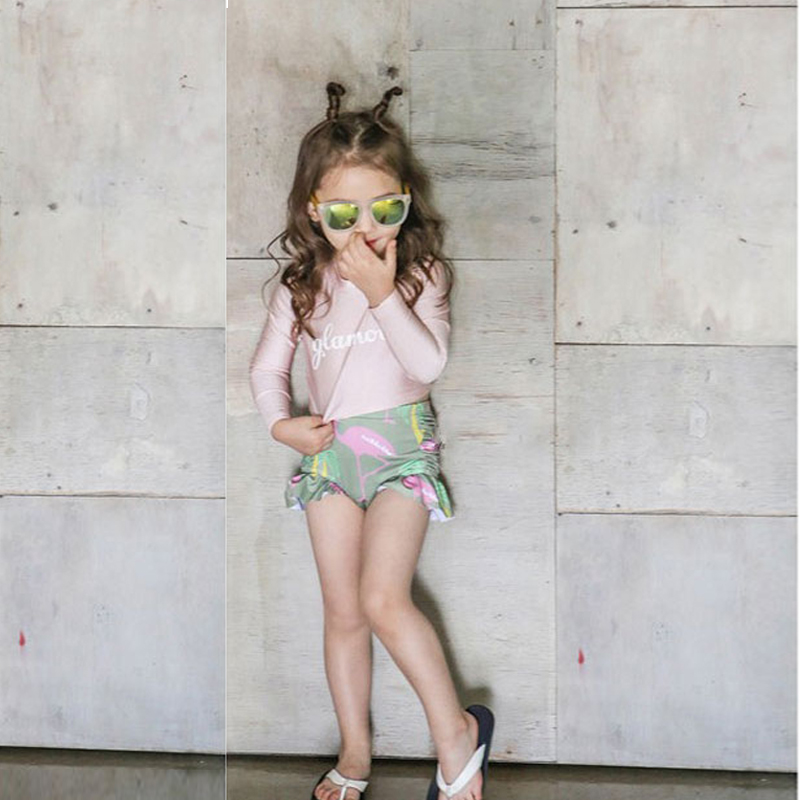 Ins儿童泳衣女孩分体高腰遮肚长袖 3岁小公主温泉游泳衣 防晒宝宝1