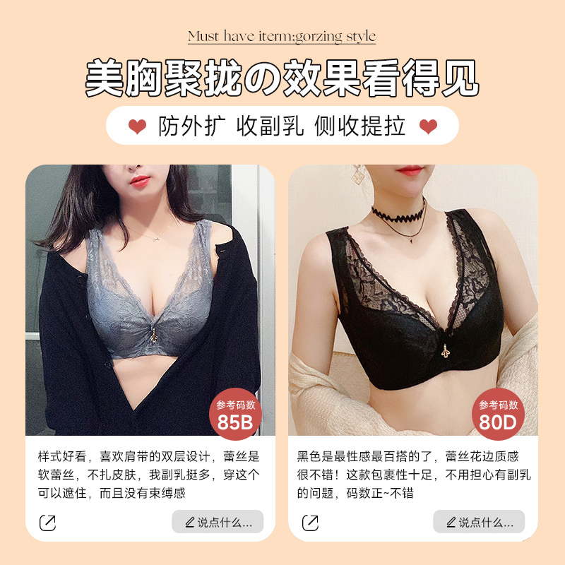 爱黛大胸显小内衣女士文胸薄款 夏性感蕾丝聚拢美背调整型胸罩塑形