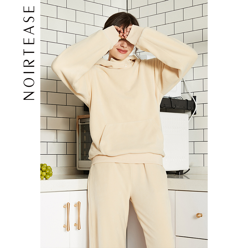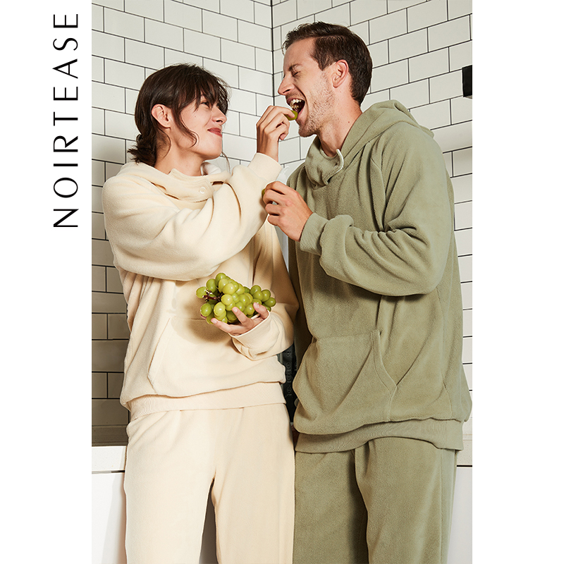 NoirTease奈黎诗秋冬情侣保暖摇粒绒加厚加绒男女卫衣家居服套装