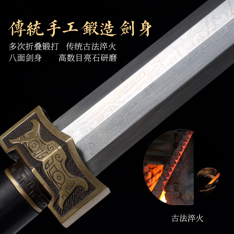 龙泉尊武剑刀剑文化如意汉王剑八面唐剑花纹钢宝剑一体长剑未开刃