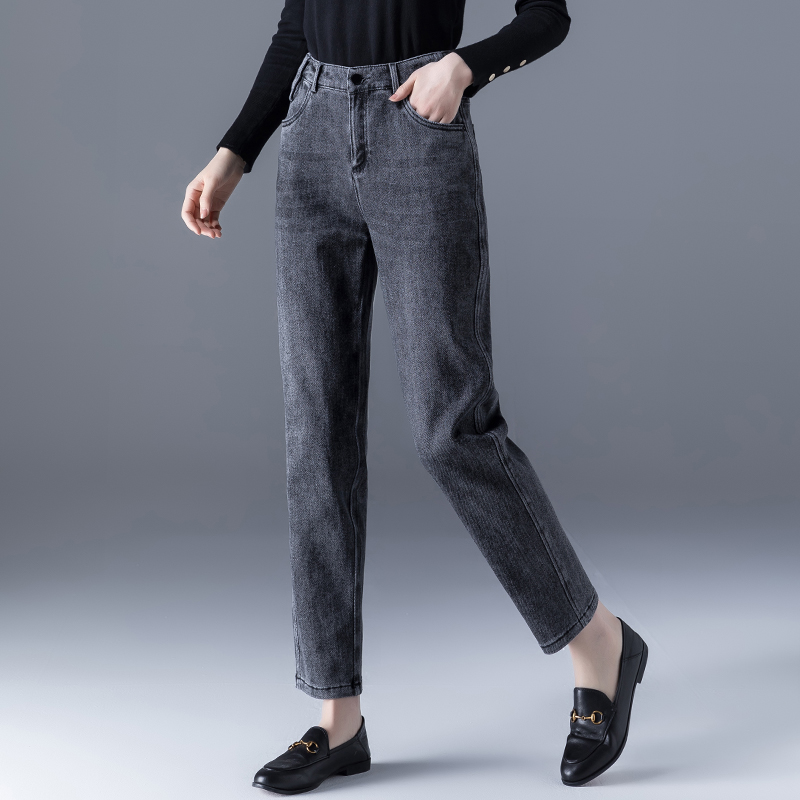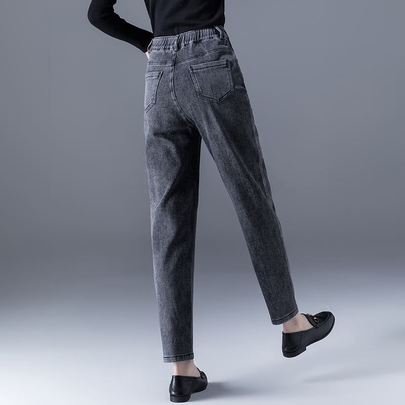 女冬新款 女裤 女士妈妈裤 哈伦裤 子秋冬加绒萝卜裤 清仓烟灰色牛仔裤