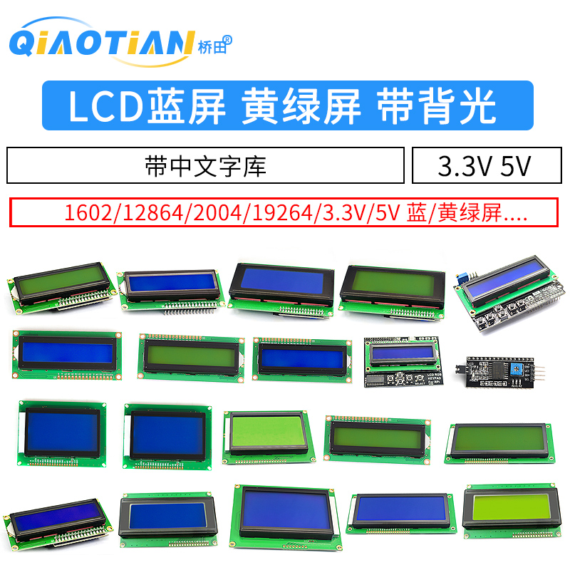 LCD显示屏3.3V 2004蓝屏黄绿屏带背光 5V液晶屏幕 12864 LCD1602A