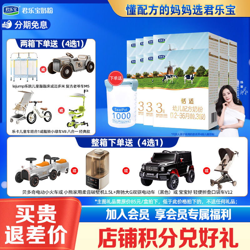 12盒装 新客试喝 君乐宝奶粉3段舒适成长恬适幼儿400g