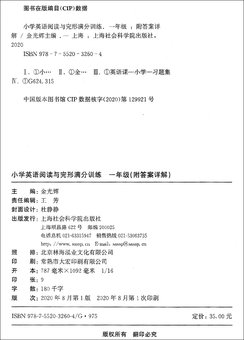 上海社会科学院出版 附答案详解英文朗读音频 社 一年级上下册1年级一二学期小学英语阅读与填空练习 小学英语阅读与完形满分训练