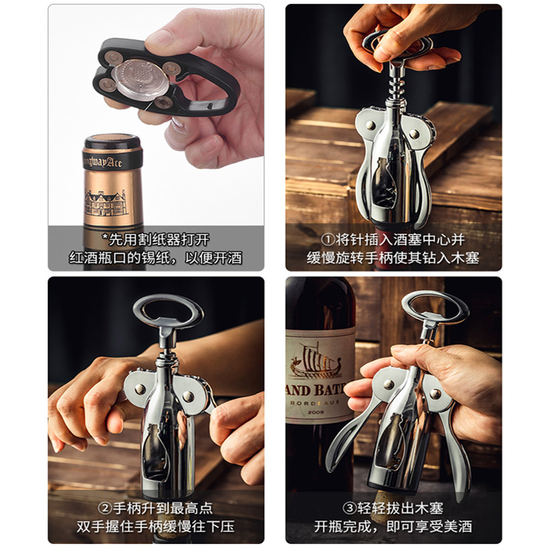 开红酒起子开瓶器开葡萄酒神器家用多功能啤酒启瓶器不锈钢海马刀