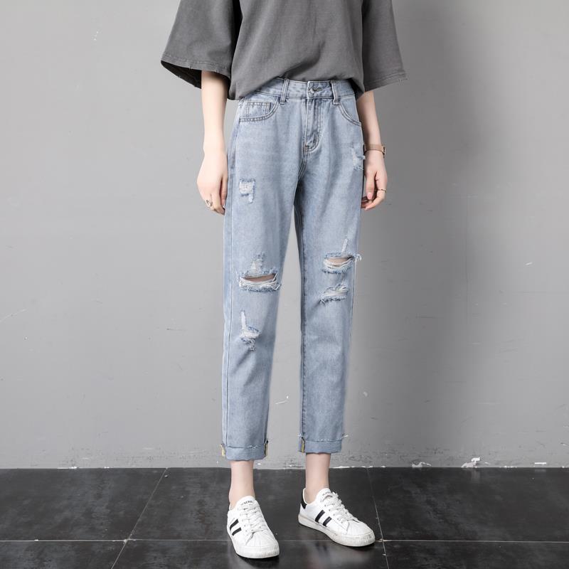 胖妹妹mm宽松老爹萝卜裤 高腰破洞牛仔裤 ins潮大码 新款 子 女春秋季