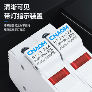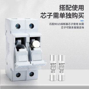 63X带灯保险丝PVC厚铜件r015熔芯 32X 新型导轨式 熔断器底座RT18
