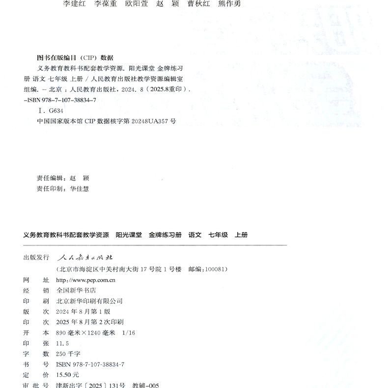 现货2025秋阳光课堂金牌练习册初中七年级上册语文人教版 同步金牌练习册小学义务教育教科书配套教学资源7七年级语文上册7初一