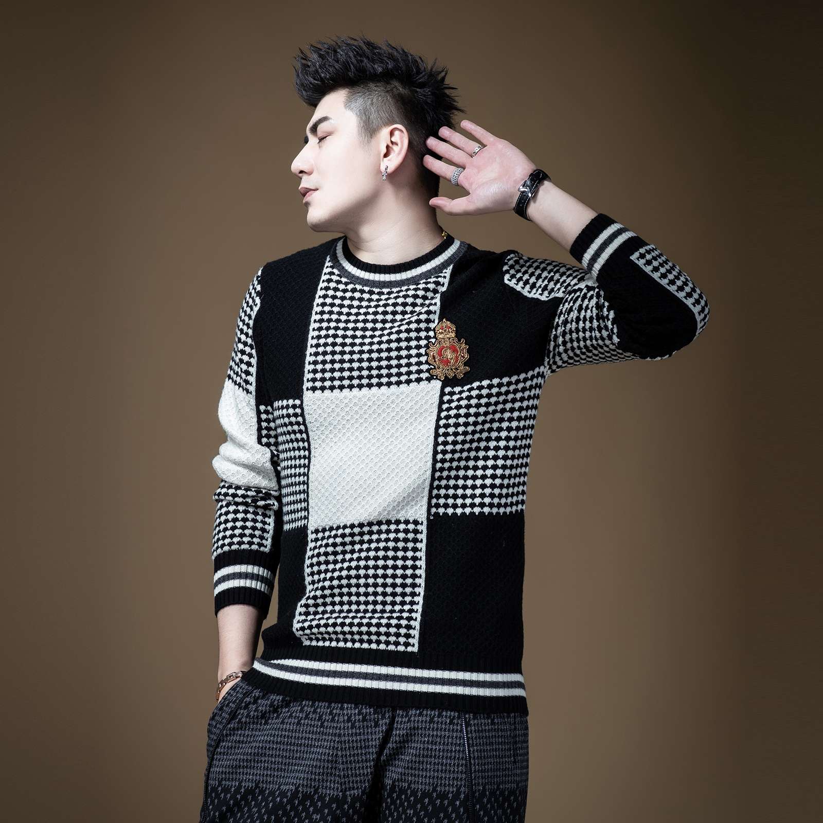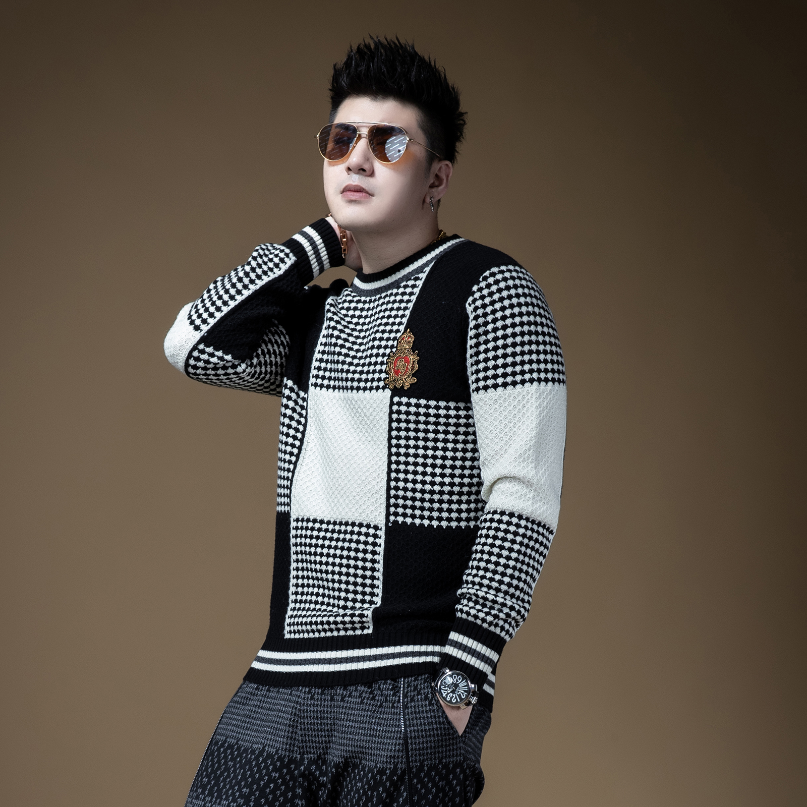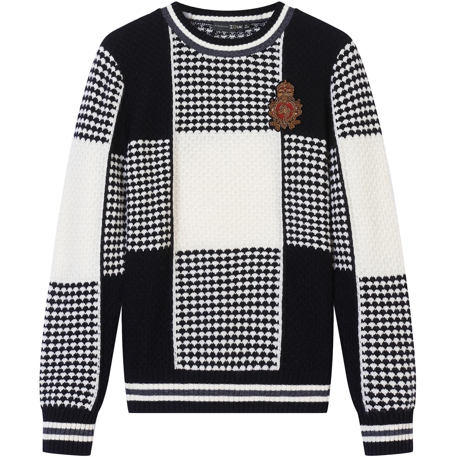 羊毛衫 潮流个性 千鸟格子刺绣宽松慵懒毛衣男ins港风韩版 ZOUK男士