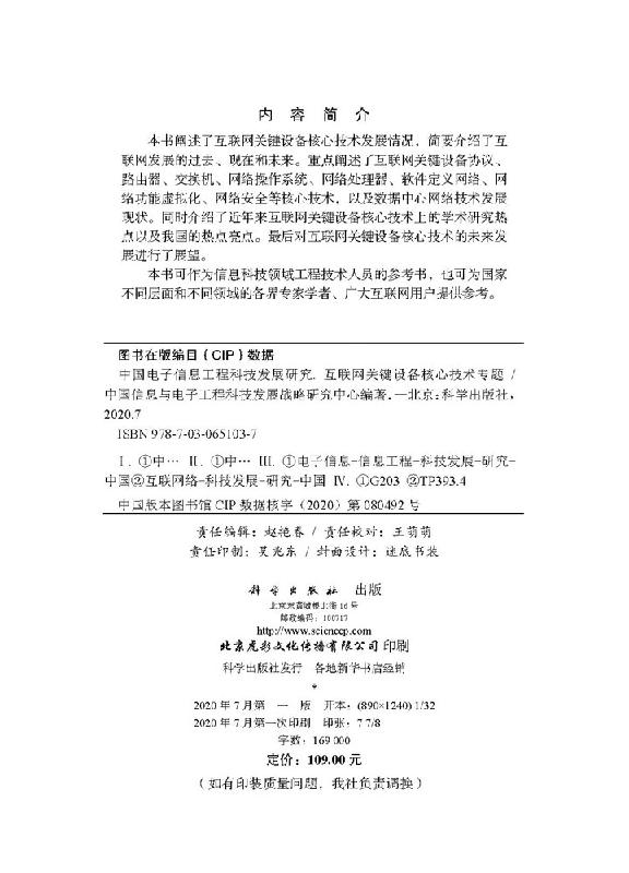 中国电子信息工程科技发展研究 中国信息与电子工程科技发展战略研究中心中国电子信息工程科技发展研究 互联网关键设备核心技术