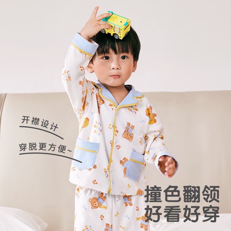 开衫 春秋季 长袖 套装 全棉高级感可外穿家居服 长裤 猫人纯棉睡衣男款