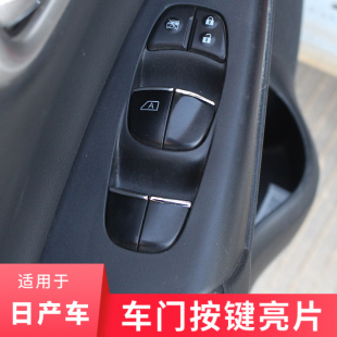 适用于日产轩逸奇骏逍客天籁骐达内饰改装 饰 车门玻璃按键亮片贴装
