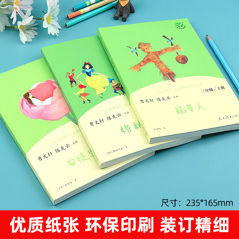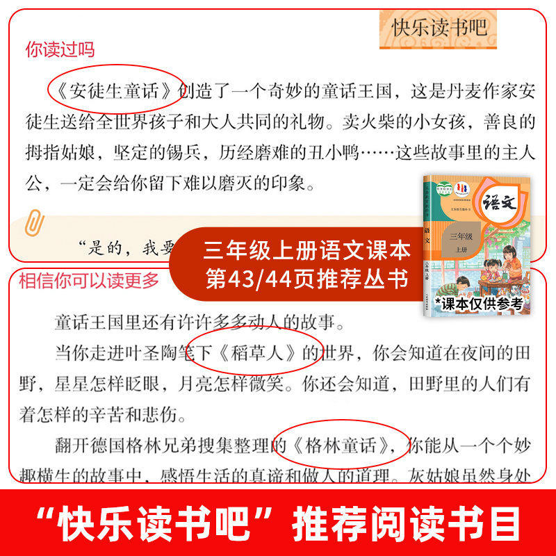 书目人民教育出版 阅读书籍老师推荐 社 快乐读书吧全套3册安徒生格林童话全集叶圣陶小学生人教版 稻草人书三年级上册必读课外书正版
