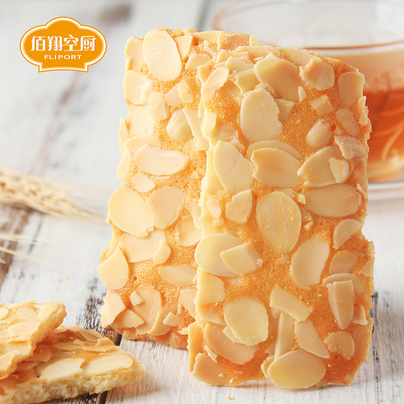 满99减50 佰翔空厨杏仁瓦片薄脆坚果仁扁桃仁巴塔木饼干点心零食