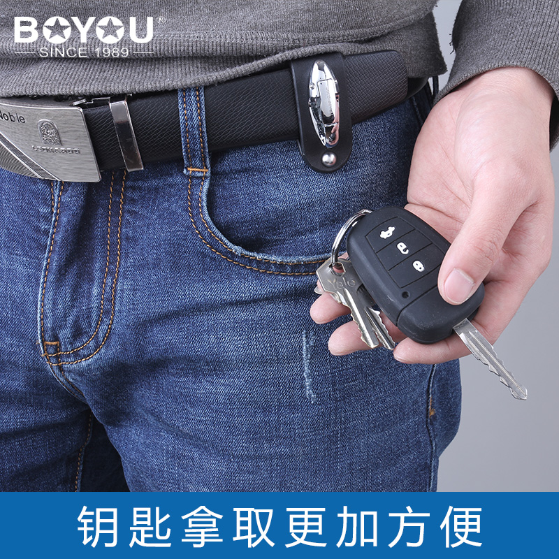 博友经典 腰挂钥匙扣挂件汽车钥匙链锁匙钥匙圈环 牛皮小扣创意男士