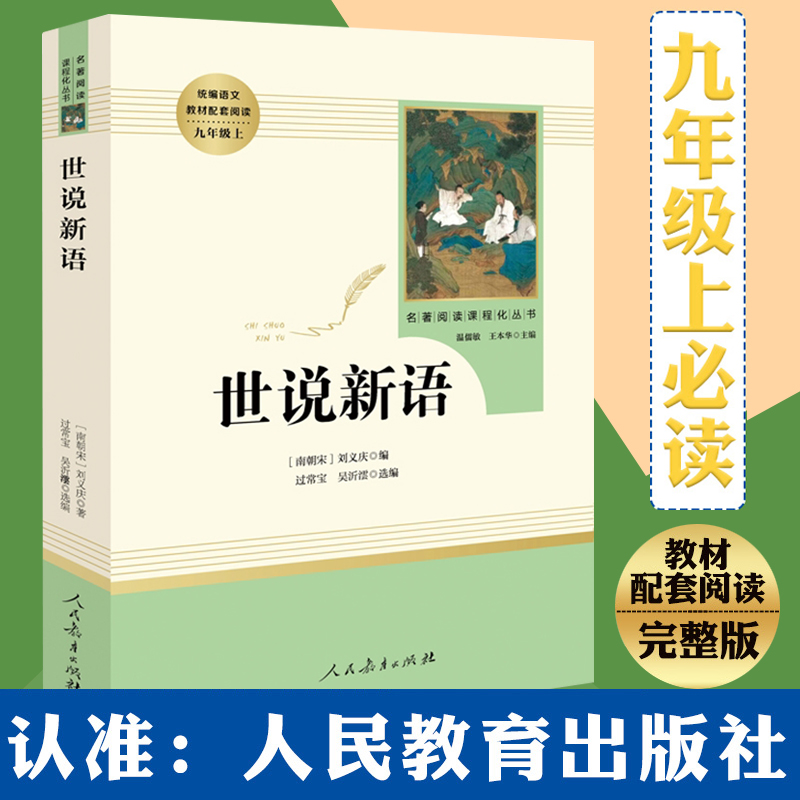 中学生完整人教版 世说新语原著正版 统编语文教材配套青少年版 社九年级上初三课外阅读书籍 原著9年级上册非必读 初中生人民教育出版