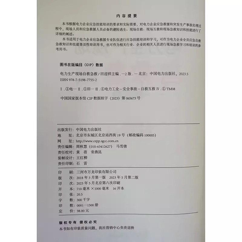 正版 中国电力出版 现货 第二版 社 电力生产现场自救急救