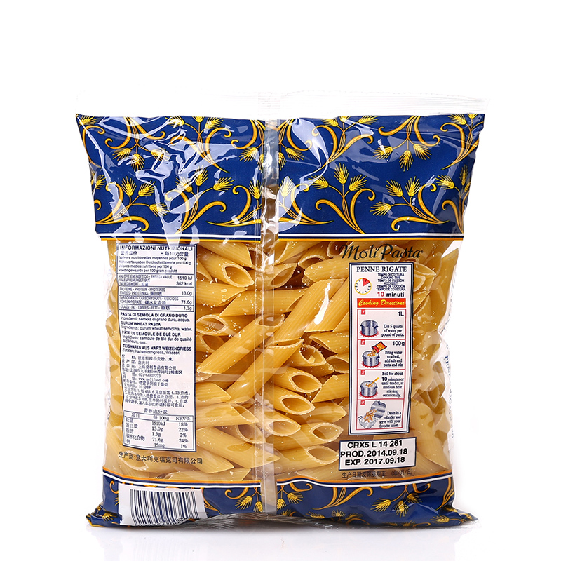 进口莫利意大利面条340 3袋意面通心粉 两头尖形家用方便速食500g