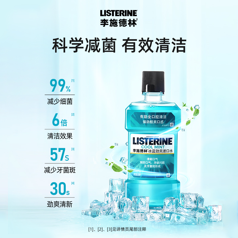 李施德林冰蓝劲爽漱口水含酒精减少细菌口 臭清新口气