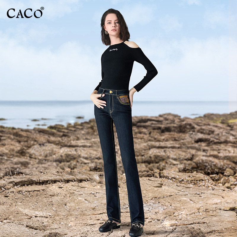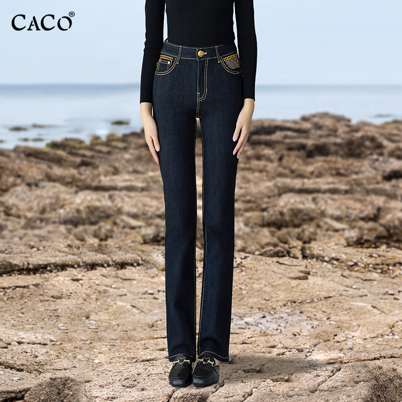 子女 百搭休闲通勤牛仔蓝阔腿长裤 POLOWALK女士直筒牛仔裤 秋冬新款