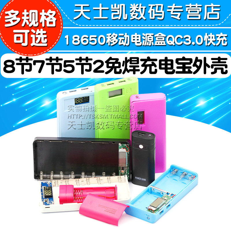 8节7节5节2免焊接充电宝外壳移动电源盒18650电池盒QC3.0快充diy