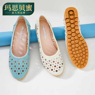 凉鞋 女鞋 女2025春夏新款 中老年大码 低跟软底平底洞洞鞋 真皮妈妈鞋