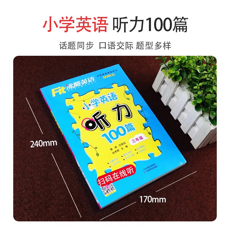 小学教辅 新版 本通用3年级英语听力综合训练用书 各版 小学生英语听力训练 沸腾英语小学英语听力100篇三年级