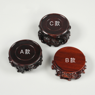 实木雕刻摆件底座圆形花盆瓶奇石头木质托架可挖槽佛像根雕工艺品