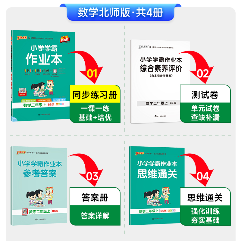 2025新版 小学学霸作业本二年级数学课本同步练习册上下册知识点提优训练达标测试卷子学生教材复习题天天练PASS绿卡图书 北师版
