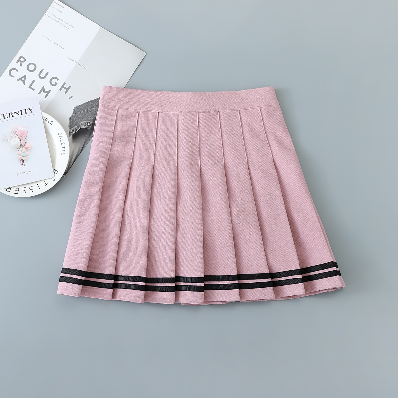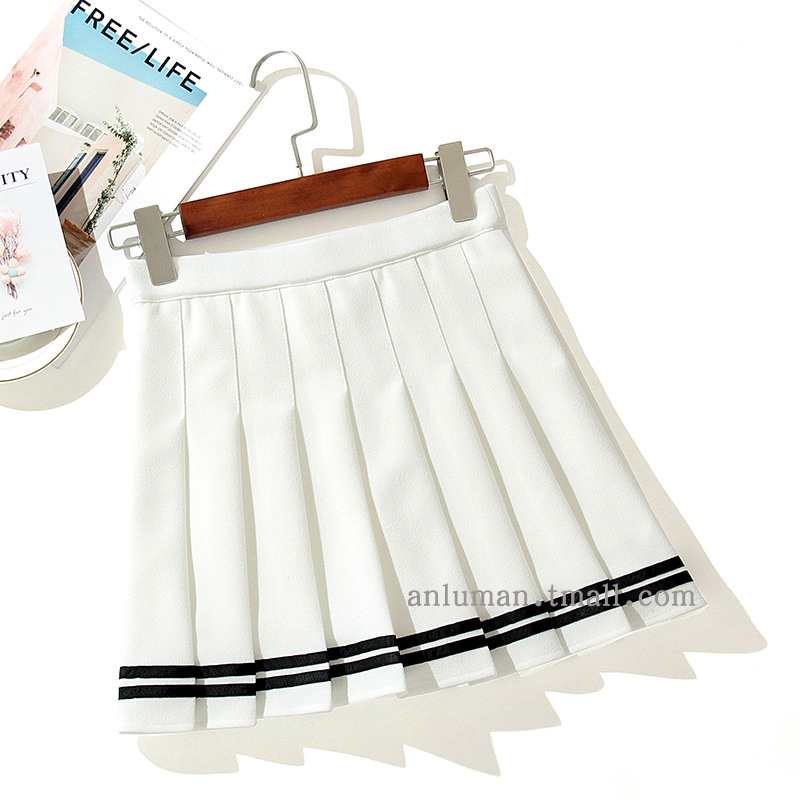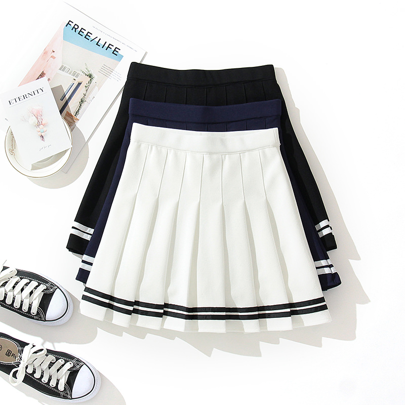 松紧腰百褶裙女夏条纹高腰校服裙a字海军学院风春秋运动半身短裙