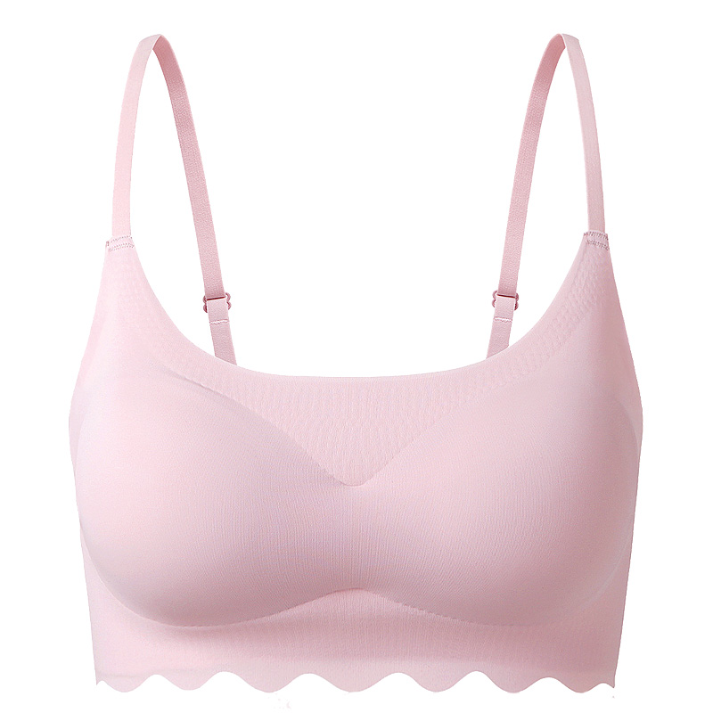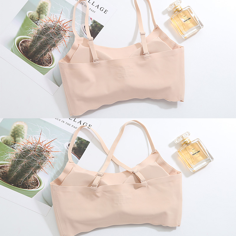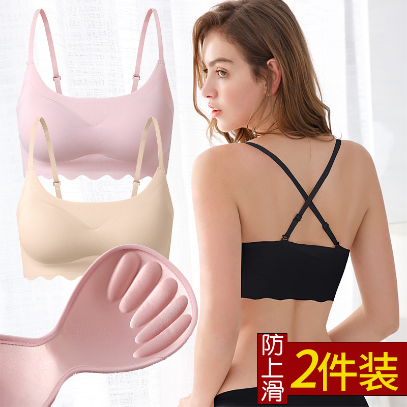 无痕美背抹胸内衣女小胸聚拢可外漏细肩带一体固定杯背心式 文胸罩