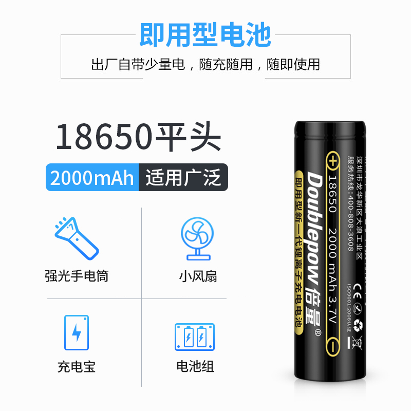 可充电3.7V强光手电筒 2000mAh毫安 小风扇电池 18650锂电池 倍量