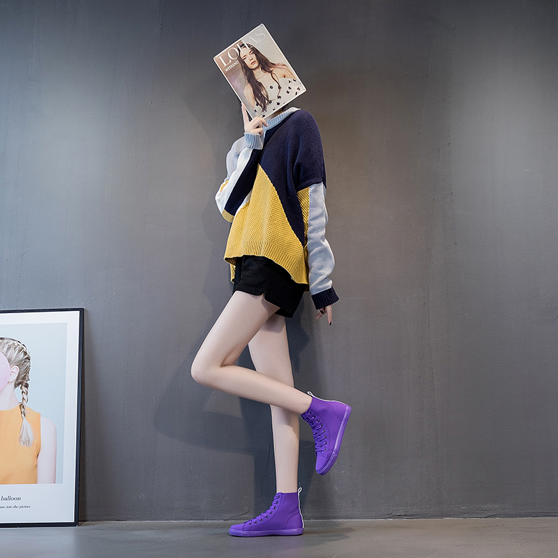 紫色糖果薄款 平底女帆布鞋 高帮弹力布新款 休闲鞋 百搭韩版 2025夏季