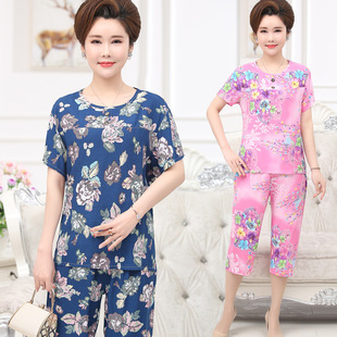 大码 棉绸衣服中老年人造棉奶奶装 绵绸家居服 套装 女睡衣夏妈妈短袖