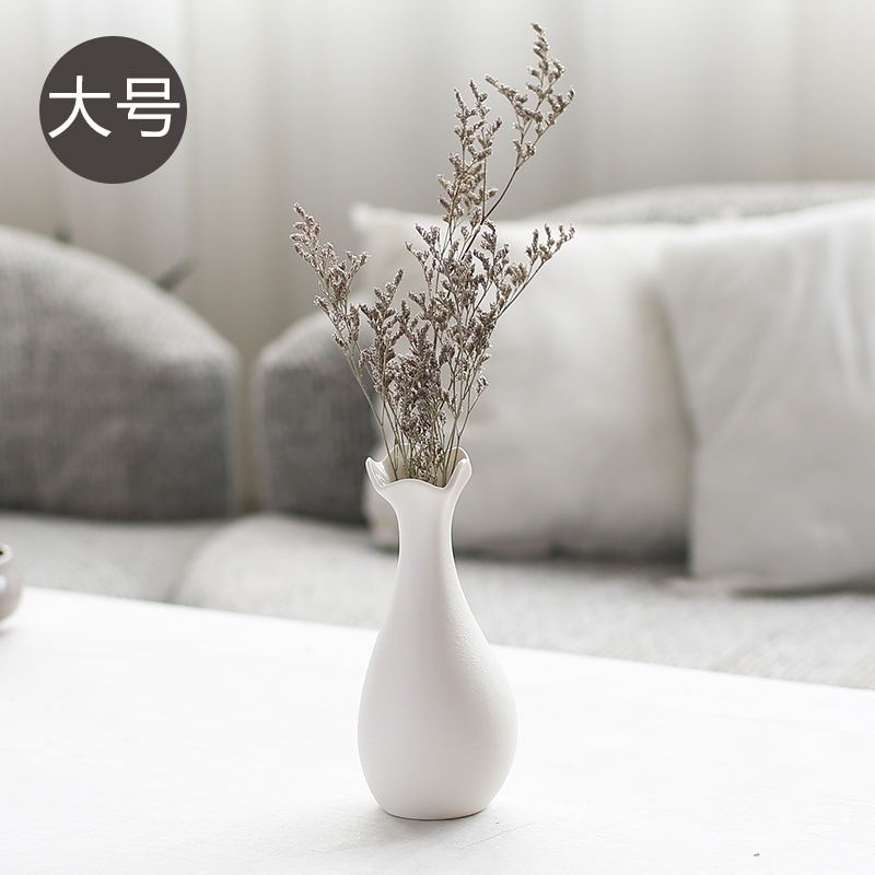 欧式 饰摆件 玫瑰插花花瓶白色简约陶瓷花器客厅餐桌干花鲜花水培装