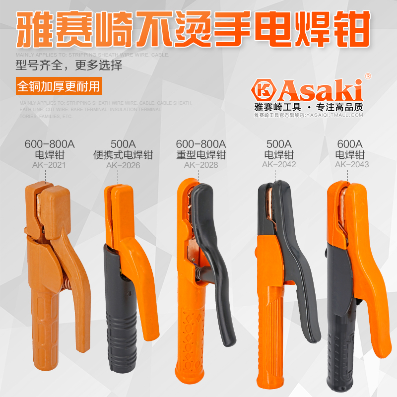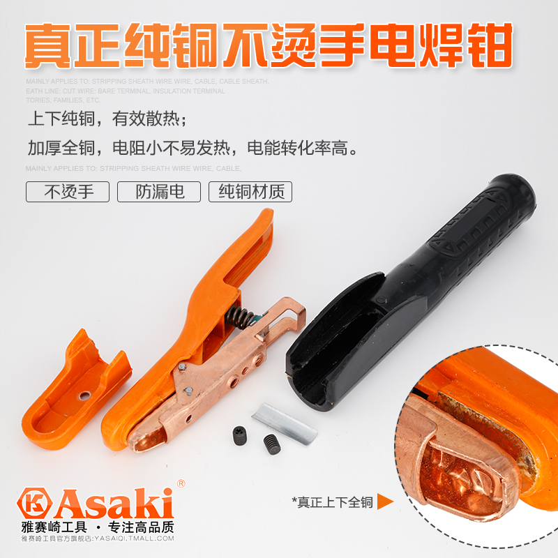 雅赛崎电焊钳500A焊条夹子600安纯铜锻压不烫手800A焊机把3C认证