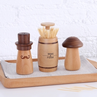 实木牙签筒蘑菇牙签盒餐厅客厅创意家用多功能牙签收纳盒可爱摆件