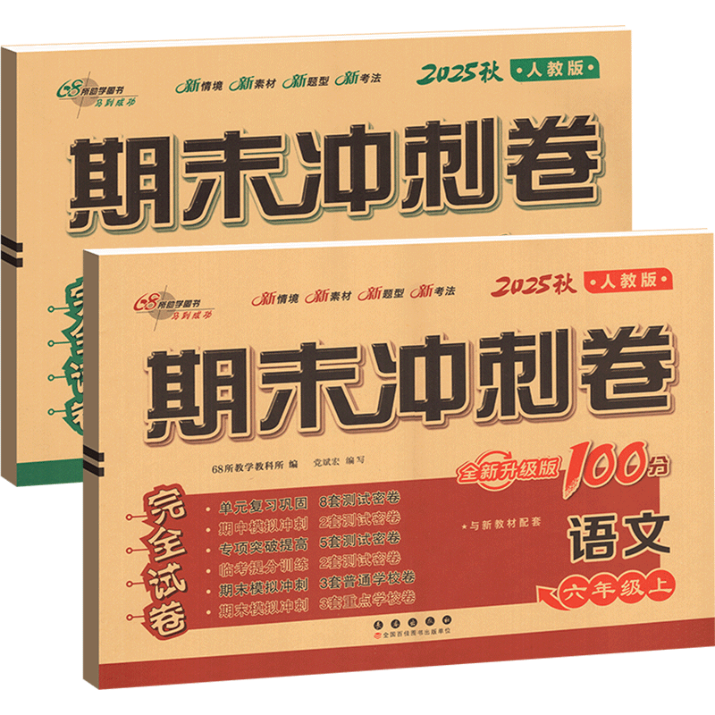 小学生6年级上试卷同步练习单元 新版 2本套装 期中期末冲刺考试测试卷子 期末冲刺100分六年级上册语文数学人教版
