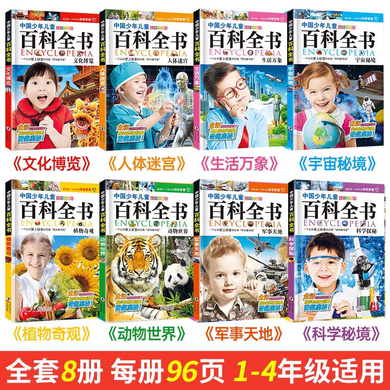 小学生十万个百科全书注音版 12岁小学版 全套8册中国儿童趣味科普少儿动物军事植物6 阅读课外书籍一二三四年级读物 正版