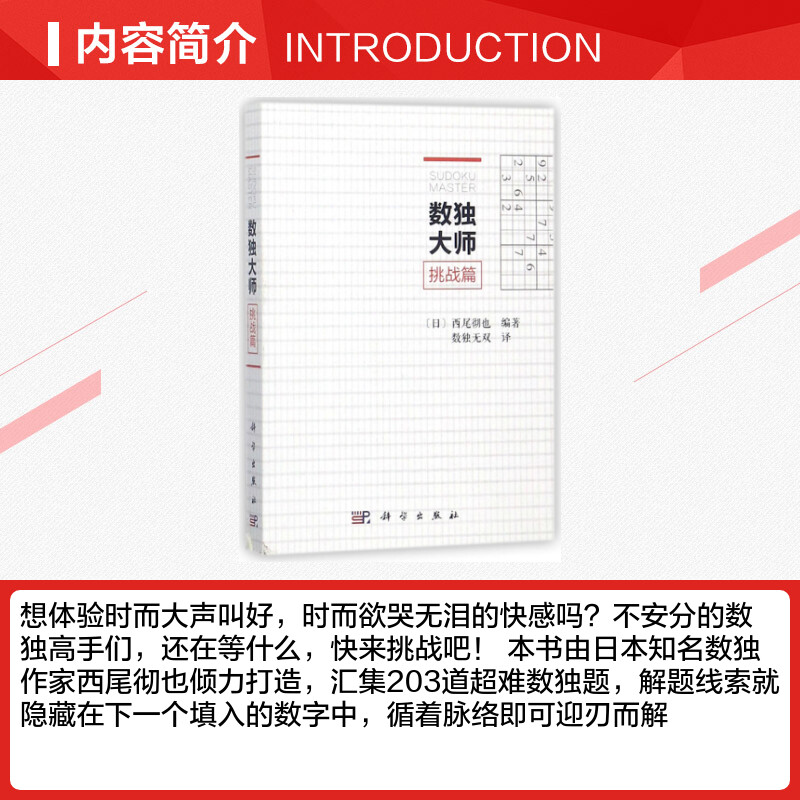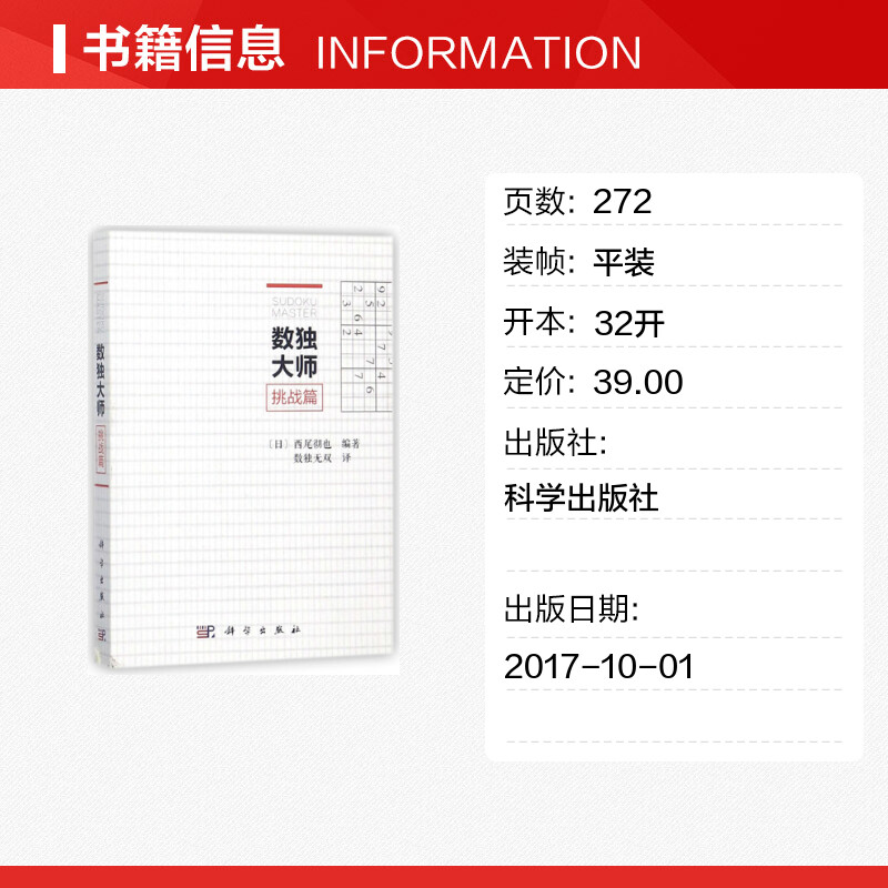 新 日 著 数独大师.挑战篇挑战篇 文教 科学出版 编著;数独无双 图书籍 西尾彻也 社 译 新华书店正版 游戏