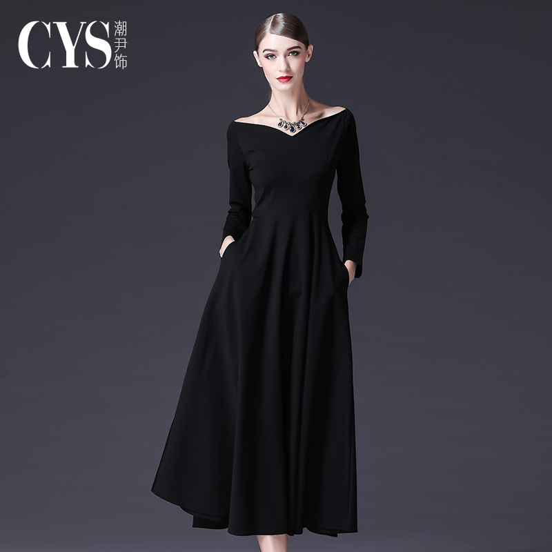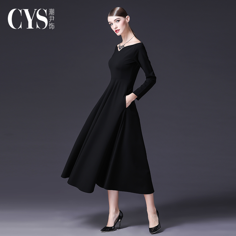 黑色一字肩连衣裙高级感2025秋冬新款 气质赫本风小黑裙宴会礼服女