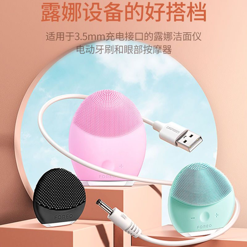 绿联圆孔充电器线圆头3.5mm台灯音响箱小风扇foreo露娜洗脸仪luna 5v电源数据线 mini2洁面仪通用供电usb转dc