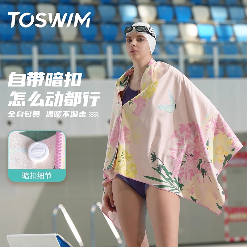 TOSWIM游泳浴巾女速干毛巾海边防晒沙滩吸水巾便携健身浴袍斗篷